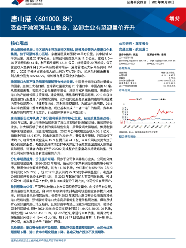 【国信证券】【20230820】唐山港(601000)受益于渤海湾港口整合,装卸主业有望迎量价齐升-32页 行业研究