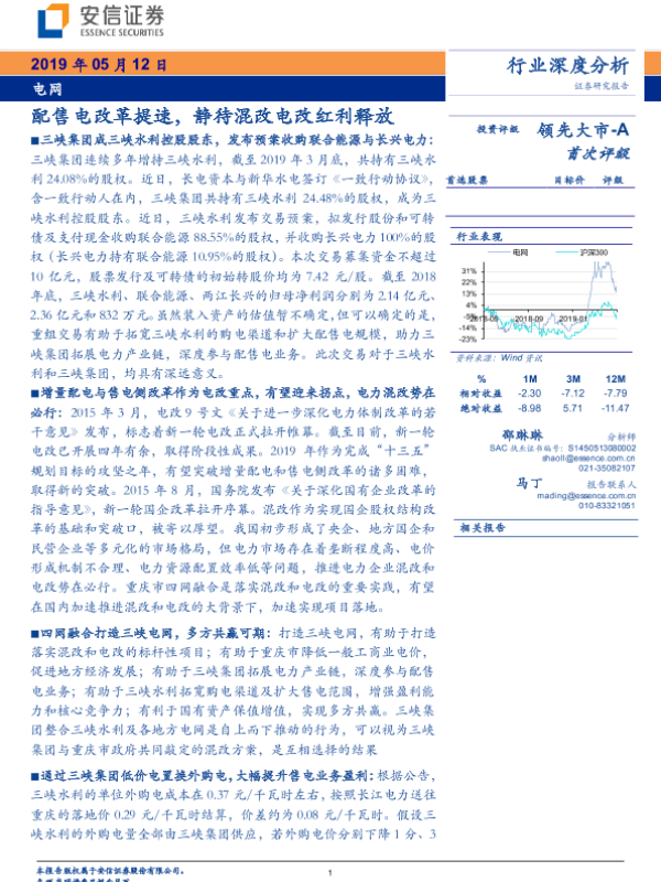 【安信证券】【20190512】电网行业深度分析:配售电改革提速,静待混改电改红利释放-36页 行业研究