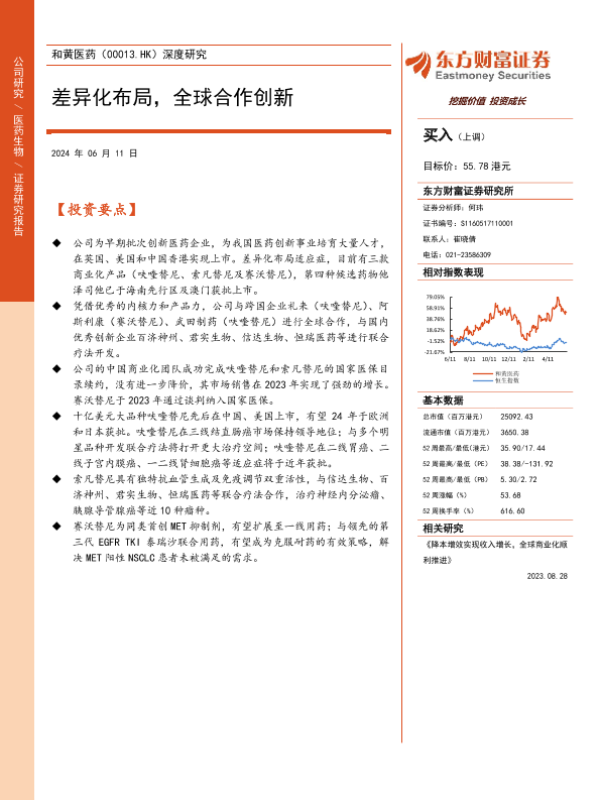 【东方财富证券】【20240611】和黄医药(00013.HK)深度研究:差异化布局,全球合作创新-43页 行业研究