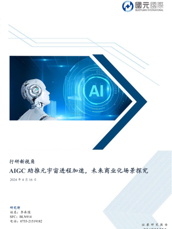 【国元国际】【20240416】行研新视角:AIGC助推元宇宙进程加速,未来商业化场景探究-21页 行业研究