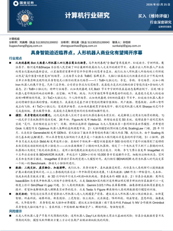 【国金证券】【202602】具身智能迫近临界点,人形机器人商业化有望揭开序幕-21页 证券期货研究报告