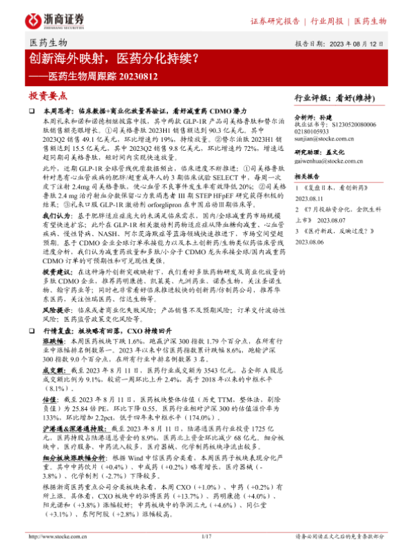 【浙商证券】【20230812】创新海外映射,医药分化持续?-17页 行业研究