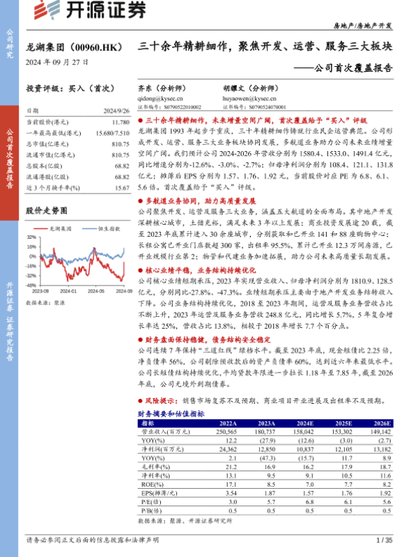 【开源证券】【20240927】龙湖集团(00960.HK)三十余年精耕细作,聚焦开发、运营、服务三大板块-35页 行业研究