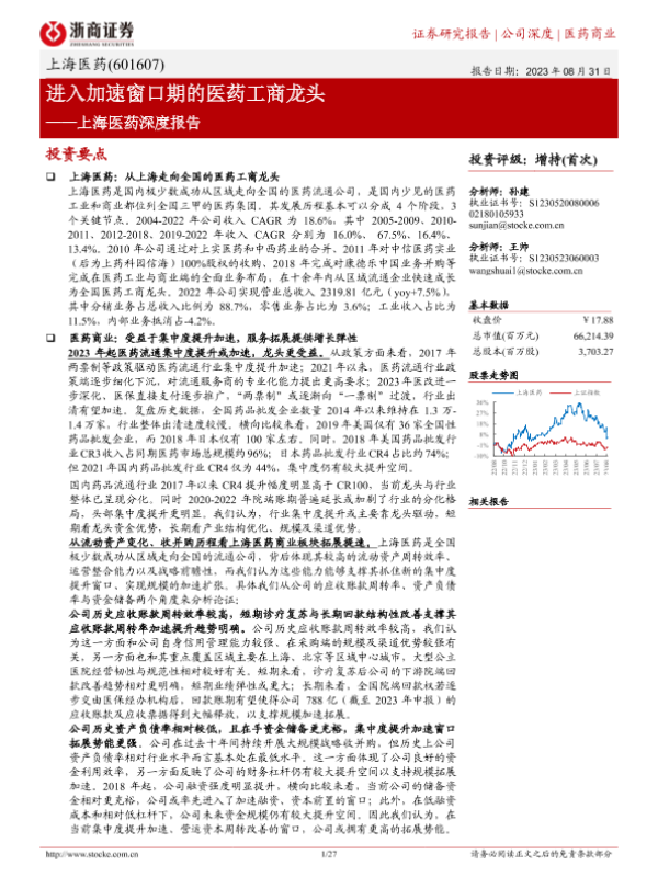 【浙商证券】【20230831】20230831-浙商证券-上海医药-601607.SH-上海医药深度报告:进入加速窗口期的医药工商龙头-27页 行业研究