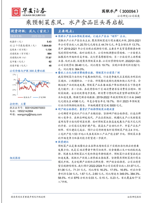 【华安证券】【20230331】国联水产(300094)乘预制菜东风,水产食品巨头再启航-29页 行业研究