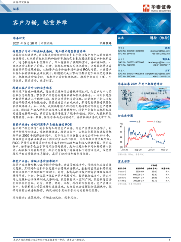 【华泰证券】【20210528】证券中期策略:客户为锚,轻重并举-26页 行业研究