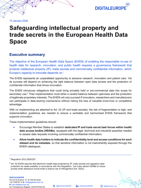 【DIGITALEUROPE】【202601】Safeguarding intellectual property and trade secrets in the European Health Data Space-12页 指南