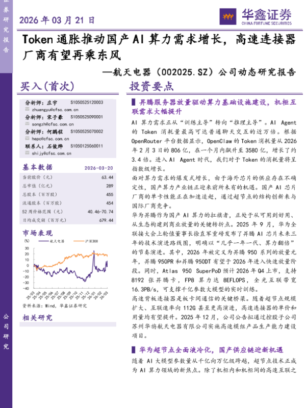 【华鑫证券】【202603】Token通胀推动国产 AI算力需求增长,高速连接器 厂商有望再乘东风-6页 证券期货研究报告