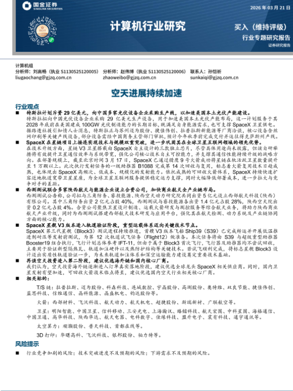 【国金证券】【202603】空天进展持续加速-15页 证券期货研究报告