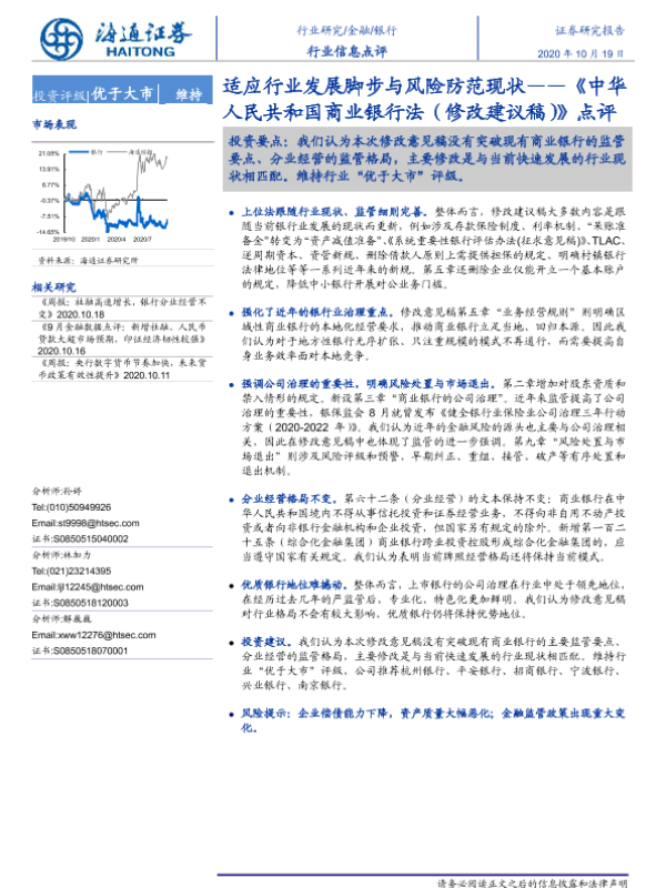 【海通证券】【20201019】适应行业发展脚步与风险防范现状——《中华人民共和国商业银行法(修改建议稿)》点评-2页 行业研究
