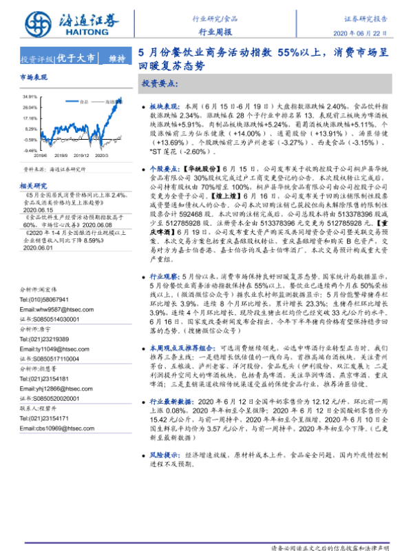 【海通证券】【20200622】20200622-海通证券-食品行业周报:5月份餐饮业商务活动指数55%以上,消费市场呈回暖复苏态势-7页 行业研究