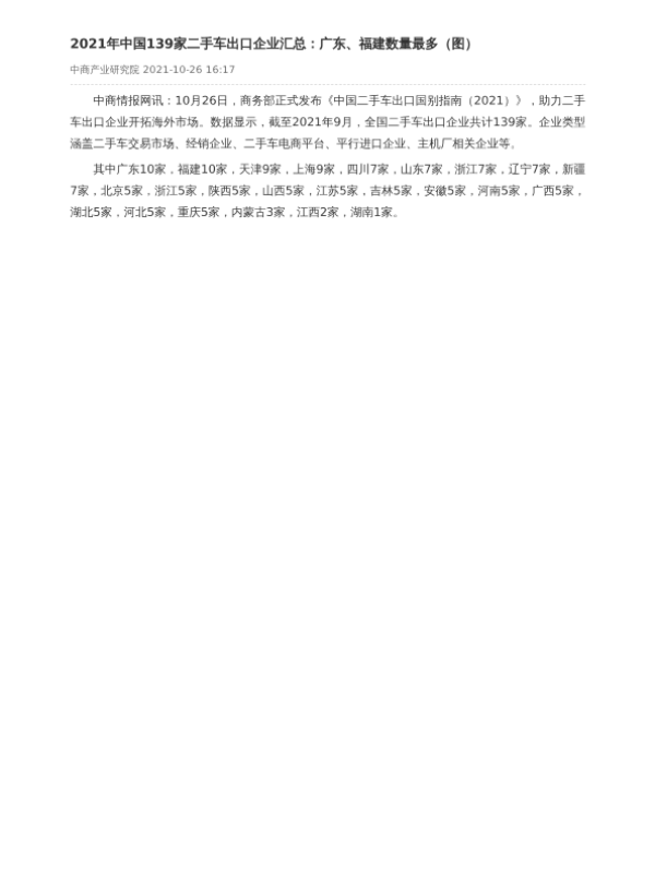 【中商产业研究院】【20211026】2021年中国139家二手车出口企业汇总:广东、福建数量最多(图)-5页 行业研究