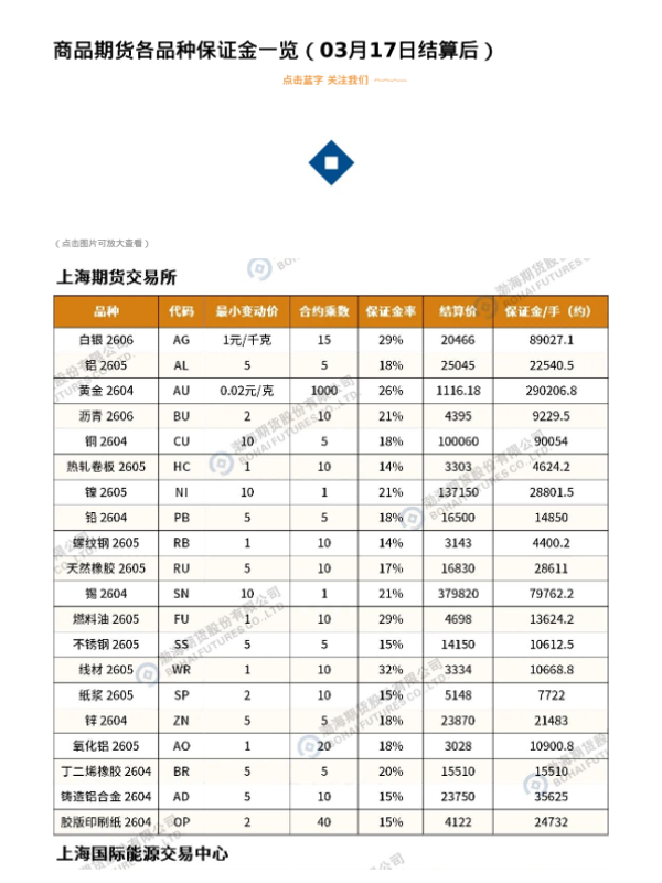 【渤海期货&AIFUTURES】【202303】一手要多少钱?商品期货各品种保证金一览(03月17日结算后)-4页 证券期货研究报告