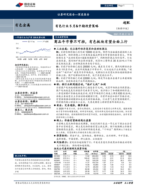 【国信证券】【20210510】有色行业5月&中期投资策略:商品牛市势不可挡,有色板块有望全面上行-28页 行业研究