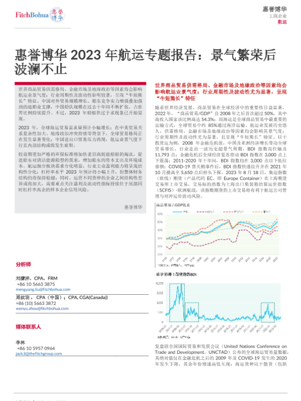 【惠誉博华】【20231009】惠誉博华2023年航运专题报告:景气繁荣后波澜不止-10页 行业研究
