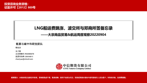 【中信期货】【20220904】大宗商品贸易&航运周度观察:LNG船运费跳涨,波交所与郑商所签备忘录-33页 行业研究