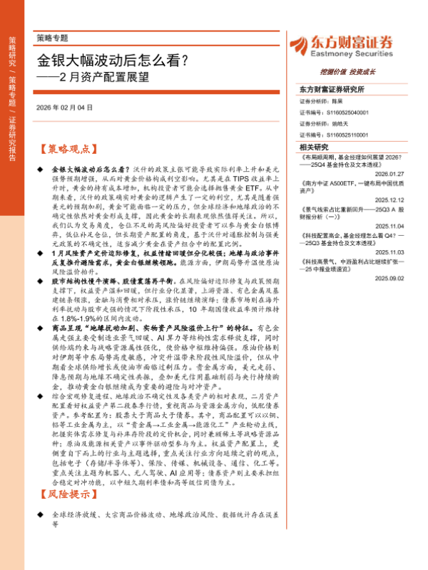 【东方财富证券】【202602】金银大幅波动后怎么看?——2月资产配置展望-12页 证券期货研究报告