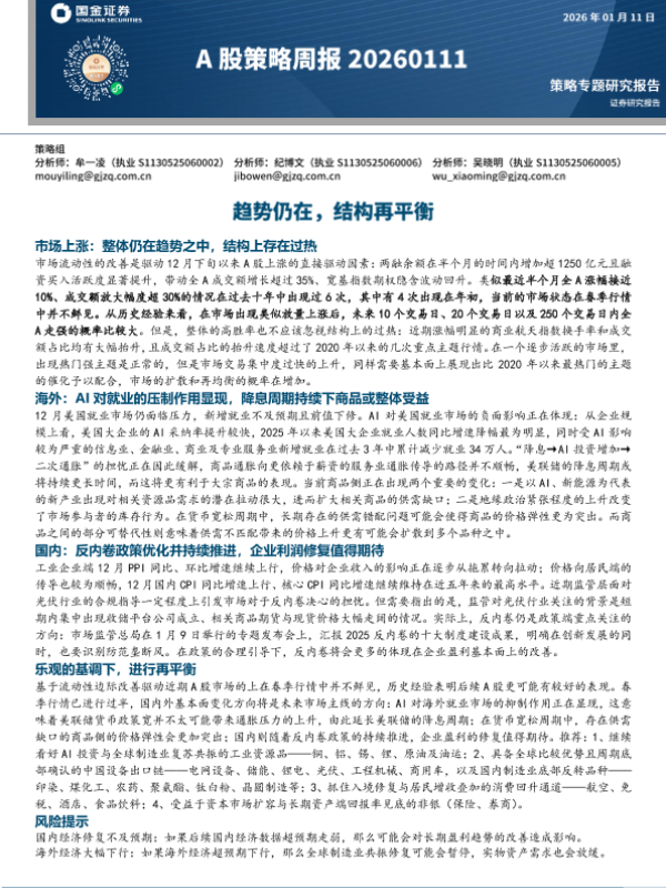 【国金证券】【202601】A股策略周报:趋势仍在,结构再平衡-12页 证券期货研究报告