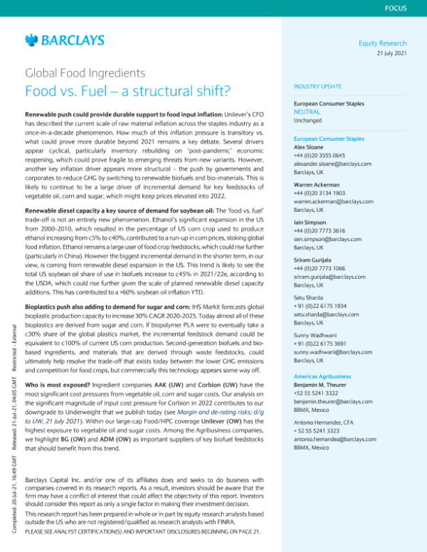 【Barclays Capital Inc.】【20210721】欧洲消费品行业-食品vs燃料:结构性转变-28页 行业研究