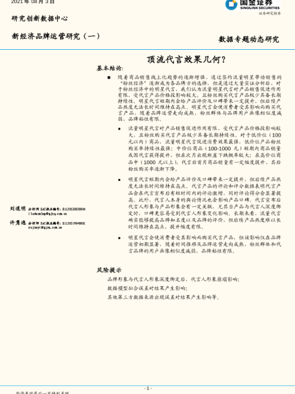 【国金证券】【20210803】数据专题动态研究:顶流代言效果几何?-16页 行业研究