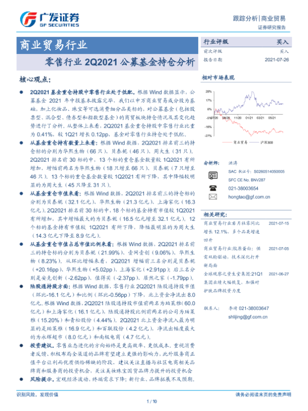 【广发证券】【20210726】零售行业2Q2021公募基金持仓分析-10页 行业研究