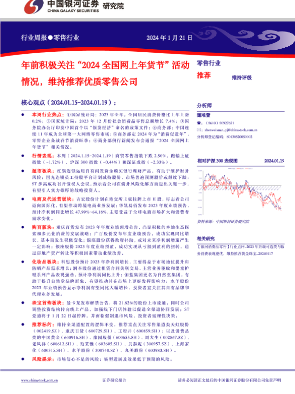 【银河证券】【20240121】零售行业周报:积极关注“2024全国网上年货节”活动情况,维持推荐优质零售公司-33页 行业研究