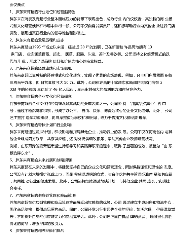 【胖东来】【20240620】胖东来商超调改专家交流20240620-6页 会议纪要
