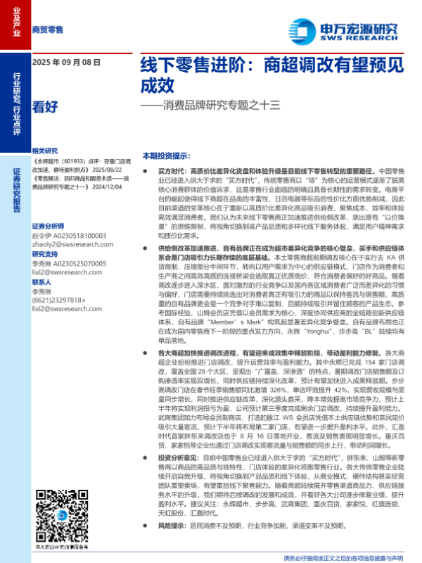 【申万宏源】【202509】线下零售进阶:商超调改有望预见成效-12页 证券期货研究报告