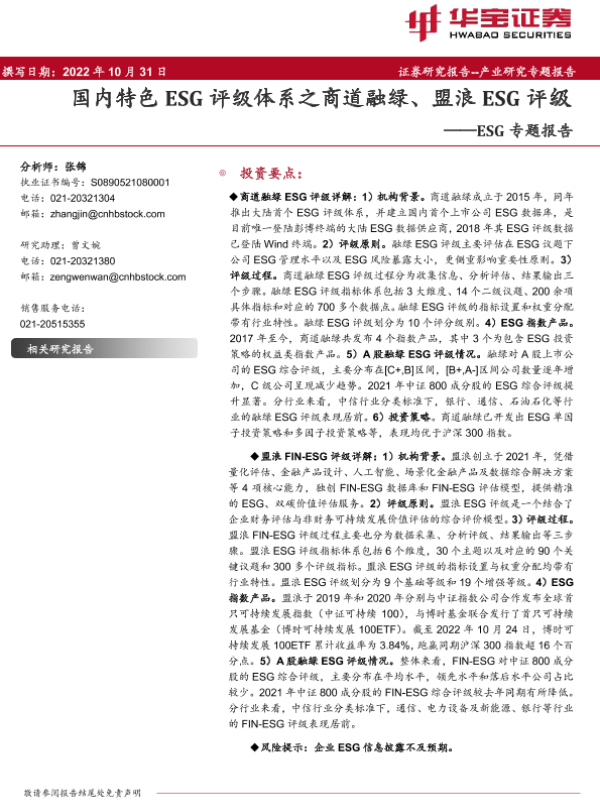 【华宝证券】【20221031】ESG专题报告:国内特色ESG评级体系之商道融绿、盟浪ESG评级-20页 行业研究