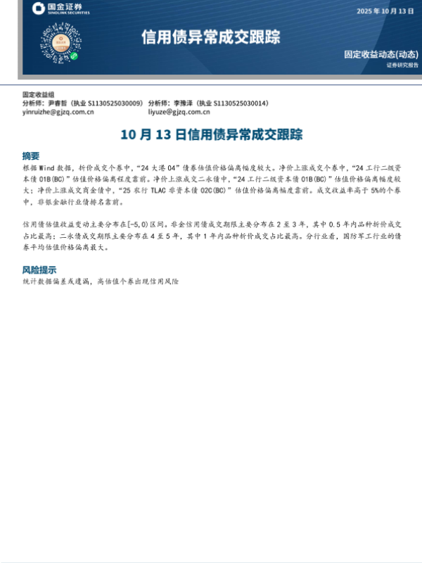 【国金证券】【202310】10月13日信用债异常成交跟踪-8页 证券期货研究报告