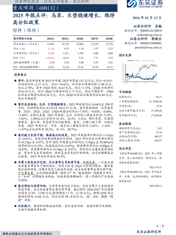 【东吴证券】【202603】2025年报点评:乌苏、乐堡稳健增长,维持高分红政策-3页 证券期货研究报告