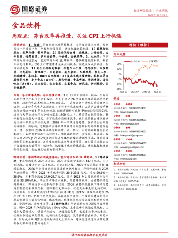 【国盛证券】【202603】食品饮料周观点:茅台改革再推进,关注 CPI上行机遇-3页 证券期货研究报告