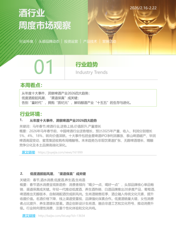 【艾瑞咨询】【202602】酒行业周度市场观察-7页 市场调研