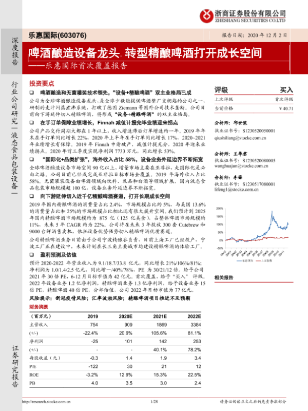 【浙商证券】【20201202】乐惠国际首次覆盖报告:啤酒酿造设备龙头,转型精酿啤酒打开成长空间-28页 行业研究