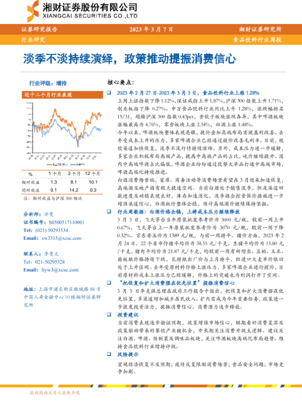 【湘财证券】【20230307】20230307-湘财证券-食品饮料行业周报:淡季不淡持续演绎,政策推动提振消费信心-11页 行业研究