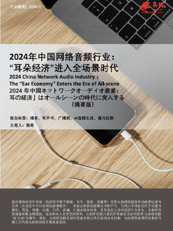 【头豹研究院】【20240531】2024年中国网络音频行业:‘耳朵经济’进入全场景时代(摘要版)-11页 行业研究