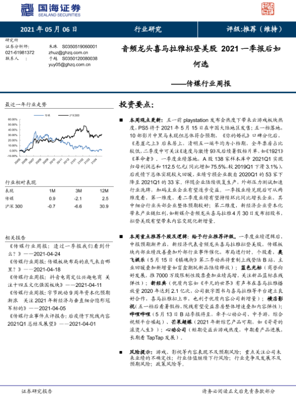 【国海证券】【20210506】音频龙头喜马拉雅拟登美股 2021一季报后如何选-19页 行业研究
