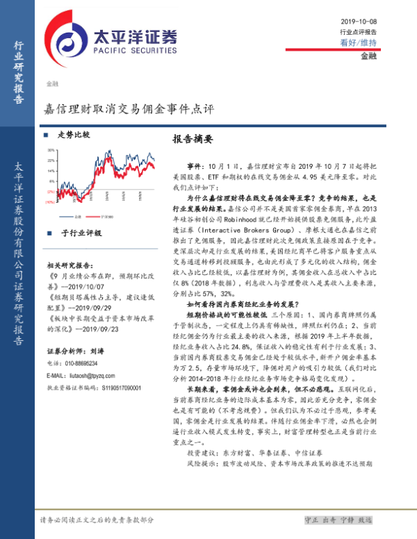 【太平洋证券】【20191008】嘉信理财取消交易佣金事件点评-3页 行业研究