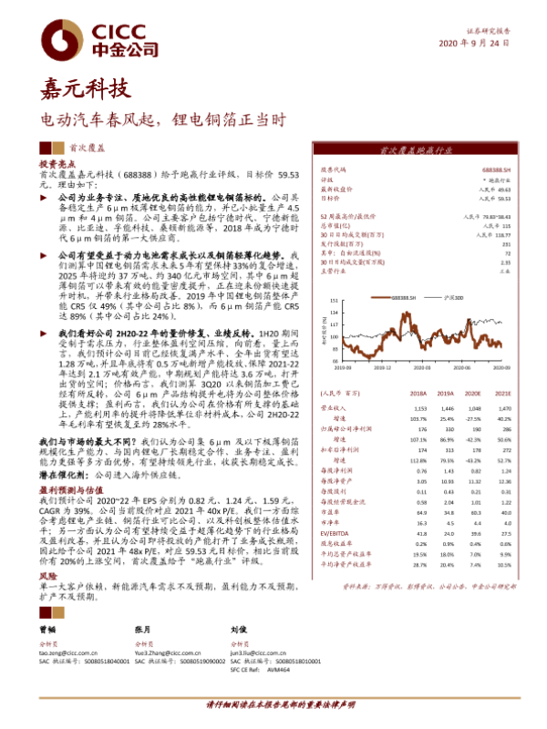 【华创证券】【20200329】20200329-华创证券-嘉元科技-688388.SH-深度研究报告:国内锂电铜箔领先供应商,6μm铜箔放量业绩快速增长-21页 行业研究