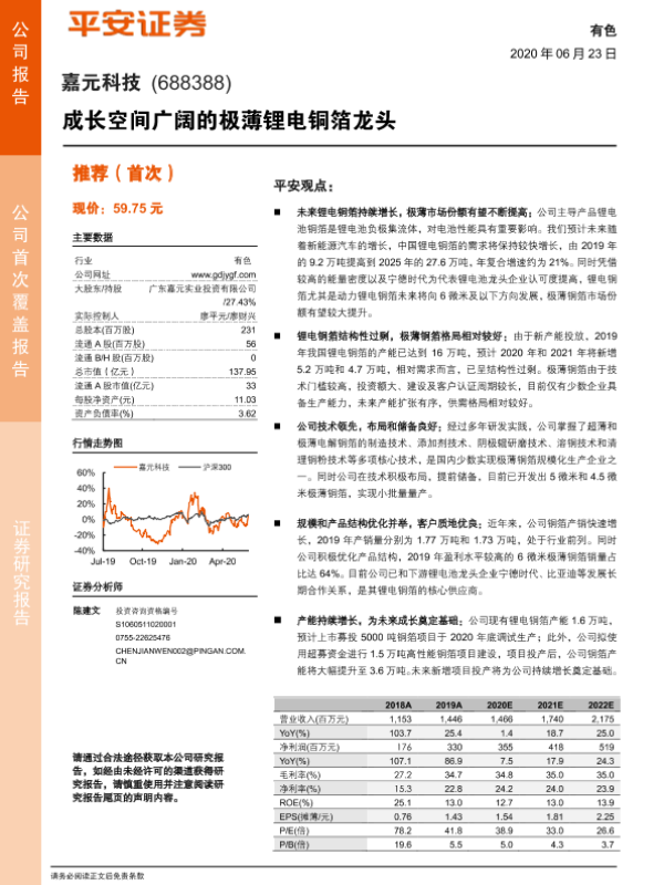 【国泰君安证券】【20200413】嘉元科技(688388)锂电铜箔优质供应商,技术持续领先-24页 行业研究