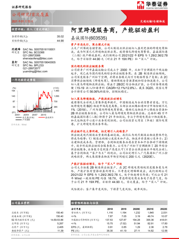 【华泰证券】【20210113】20210113-华泰证券-嘉诚国际-603535.SH-阿里跨境服务商,产能驱动盈利-21页 行业研究