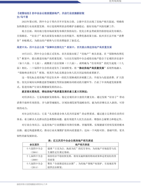 【克而瑞】【2025】四中全会公报首提房地产,开启行业发展新征程-4页 政策文件