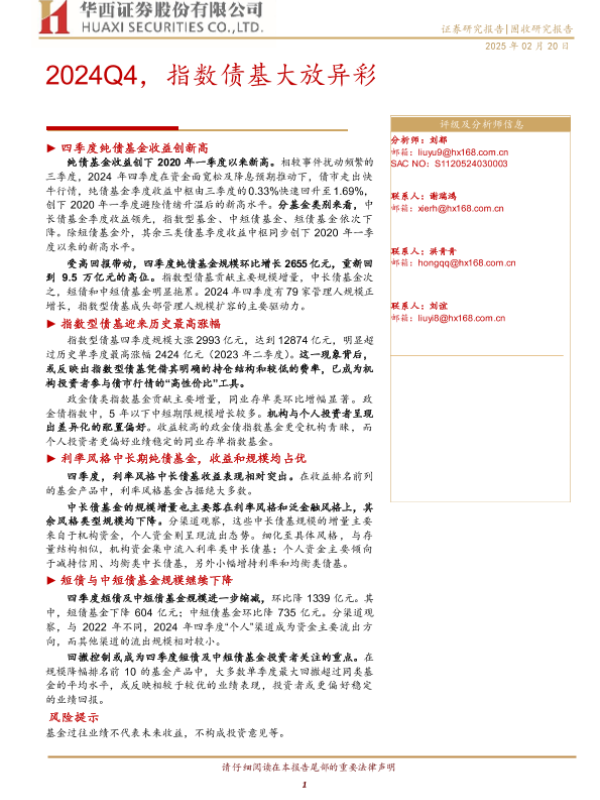 【华西证券】【20250220】2024Q4,指数债基大放异彩-18页 行业研究