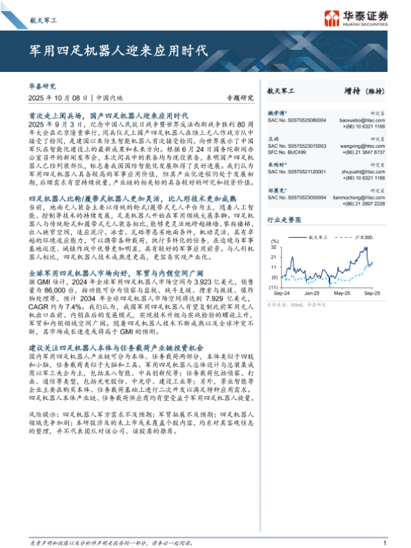 【华泰证券】【202510】军用四足机器人迎来应用时代-21页 证券期货研究报告