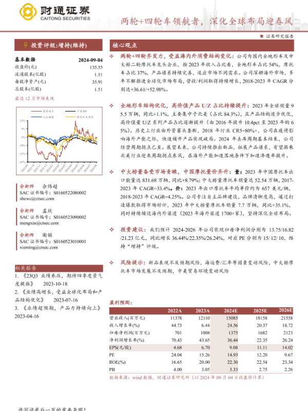 【财通证券】【20240904】春风动力(603129)两轮+四轮车领航者,深化全球布局迎春风-37页 行业研究