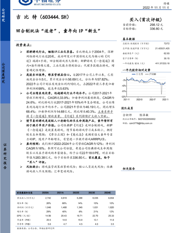 【华福证券】【20221111】吉比特(603444.SH)回合制玩法“适老”,童年向IP“新生”-26页 行业研究