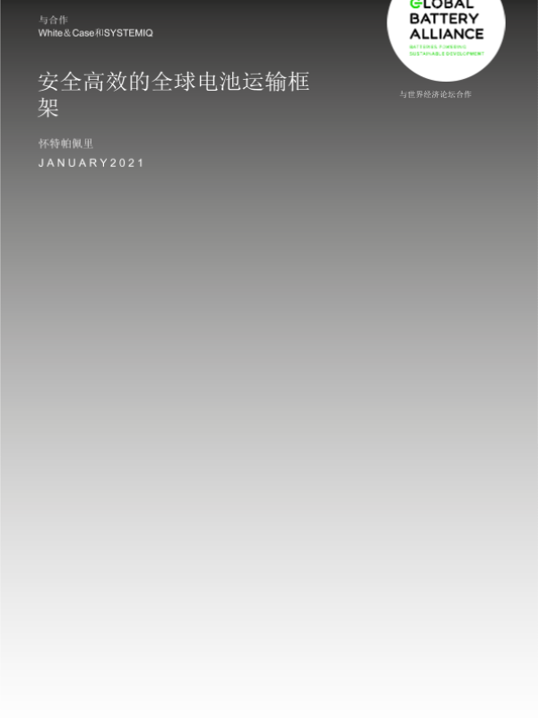 【全球电池联盟(GBA)】【2021】安全有效的全球电池运输框架-20页 白皮书