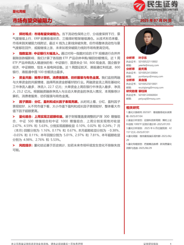 【民生证券】【20250706】量化周报_市场有望突破阻力-16页 证券期货研究报告