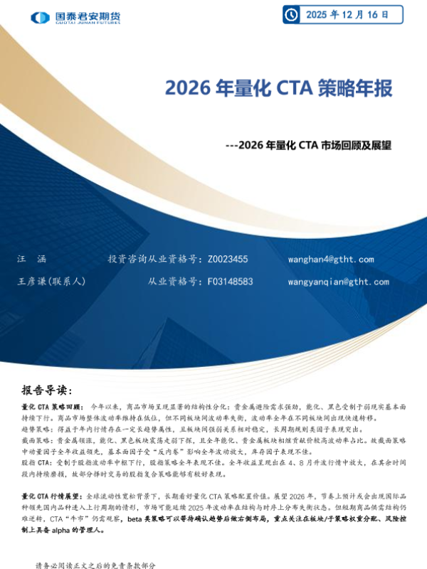 【国泰君安期货】【202512】2026年量化 CTA市场回顾及展望-15页 证券期货研究报告