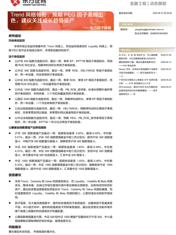 【东方证券】【20250706】Trend风格领衔,预期PEG因子表现出色,建议关注成长趋势资产-19页 证券期货研究报告